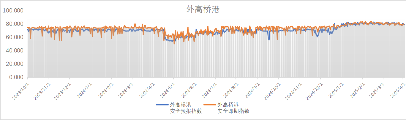 该指数运用AIS大数据技术,分析近十年上海港靠离泊作业准点情况和事故险情数据,从环境、船舶、航行、管理四个维度构建临近预报(Nowcasting)模型,评估与预报船舶进出港安全和靠离泊准点态势。