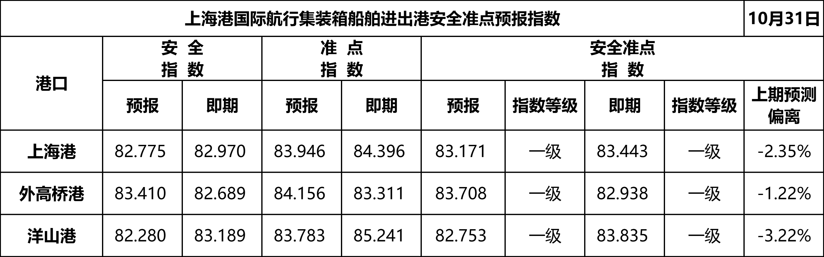 【发布】上海港国际航行集装箱船舶进出港安全准点预报指数(10.31)