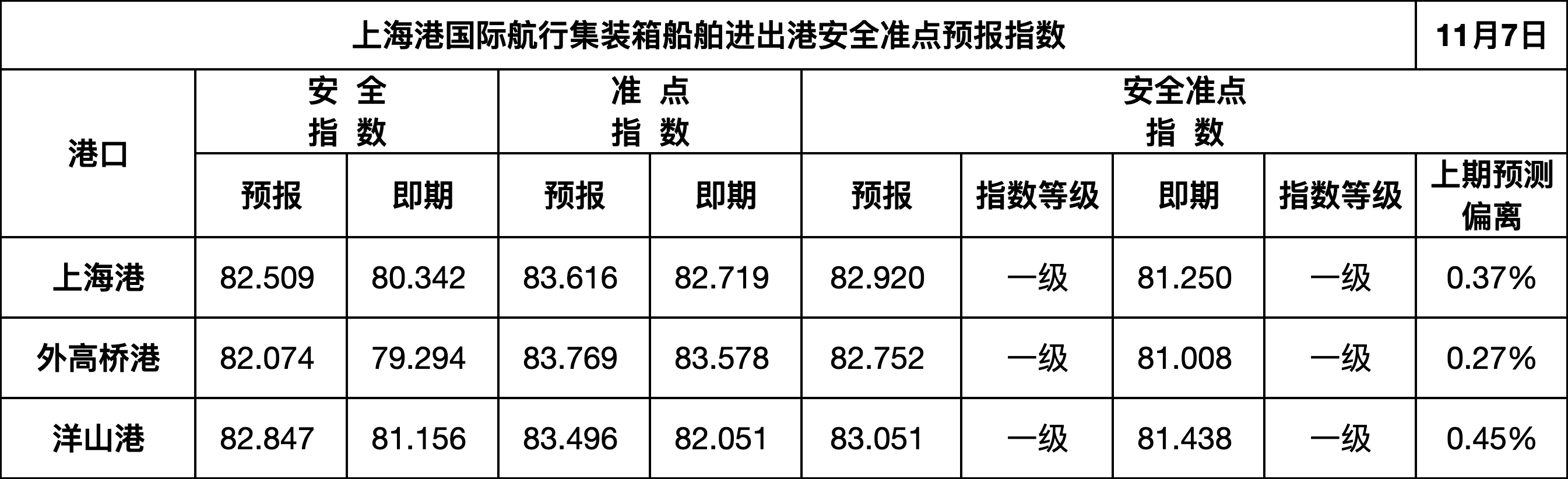【发布】上海港国际航行集装箱船舶进出港安全准点预报指数(11.7)