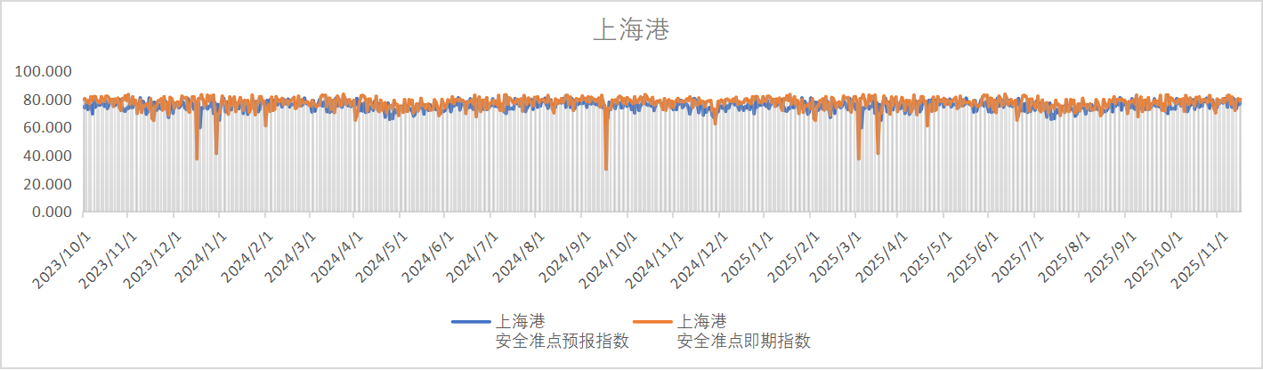 作为中国重要的海运物流节点,上海港位列全球最繁忙的港口之一,港区内的船舶安全和准点到港非常重要。为保障船舶进出港安全监管与准点运维,中华人民共和国洋山港海事局与上海海事大学上海国际航运研究中心在此前联合研发的“洋山港国际航行集装箱船舶进出港安全准点指数”的基础上,于2024年10月17日正式上线“上海港国际航行集装箱船舶进出港安全准点预报指数”。