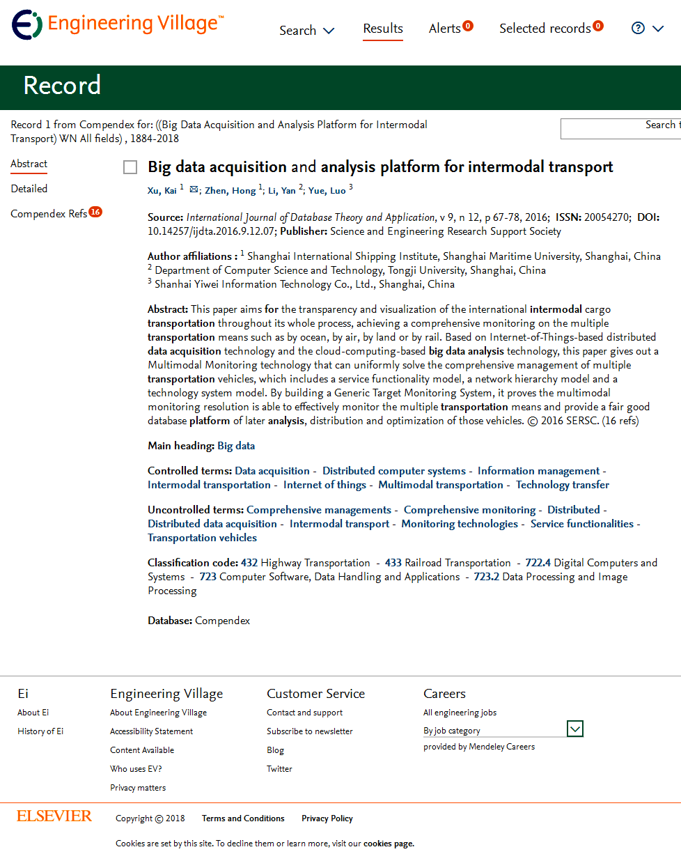 已发表的航运物流大数据论文EI检索收录证明