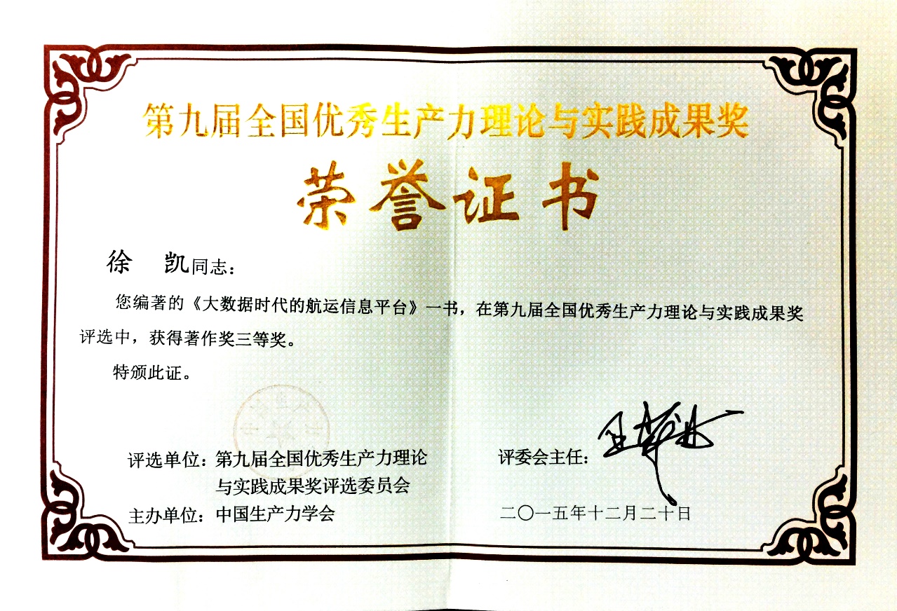 已发表的航运大数据著作的获奖证明