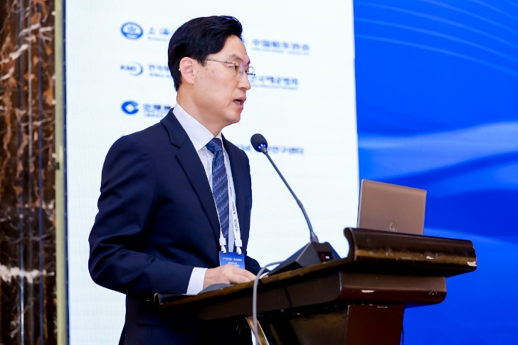 KMI崔尚喜副院长代表院长赵正熙作开幕致辞,他指出环境合规已成航运企业可持续发展的核心前提,数字化转型与人工智能技术应用是未来竞争力的关键。他表示本次论坛为中韩双方研判行业趋势、聚焦脱碳化与数字化议题提供了重要平台,恰逢KMI中国研究中心成立二十周年,期待深化两国航运合作,共建更具韧性与智慧的行业未来。