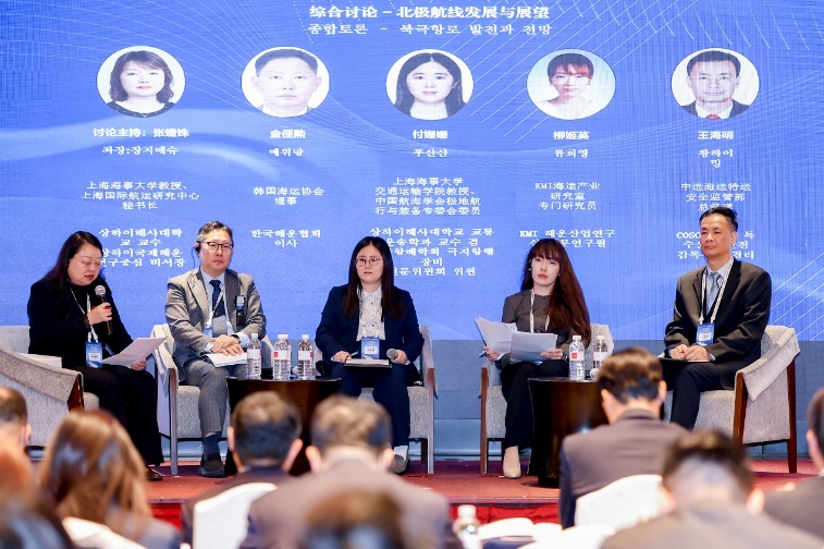 综合讨论环节由SISI秘书长张婕姝教授主持,KMI海运产业研究室专门研究员柳姬英、韩国海运协会理事金俓勲、中远海运特运安全监管部总经理王海明、上海海事大学交通运输学院教授兼中国航海学会极地航行与装备专委会委员付姗姗等嘉宾围绕国际航运市场、北极航线的运营实践、技术挑战、环境规制与合作机遇等核心问题展开深入交流,并与现场观众进行了互动交流。