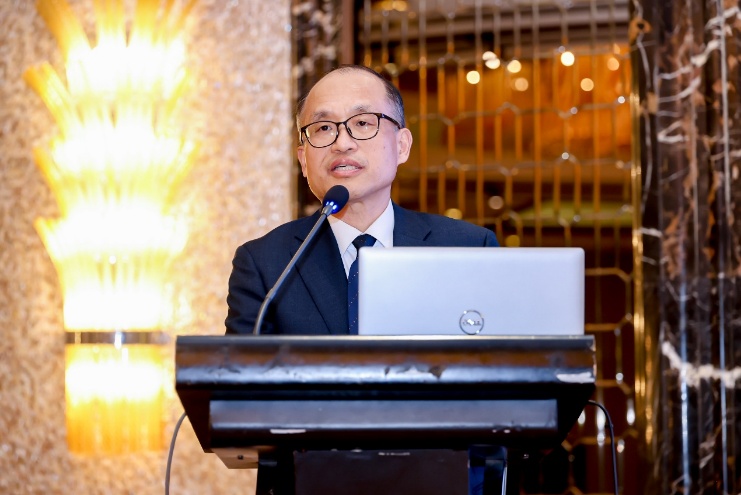 韩国驻上海总领事馆副总领事崔载河作致辞发言,指出本次论坛聚焦全球经济形势、绿色航运走廊等行业热点,搭建了高效交流平台;强调集装箱标准化革新推动全球贸易变革,航运脱碳是新发展方向,清洁燃料将助力行业绿色转型。同时承诺继续发挥桥梁作用深化两国交流与合作。