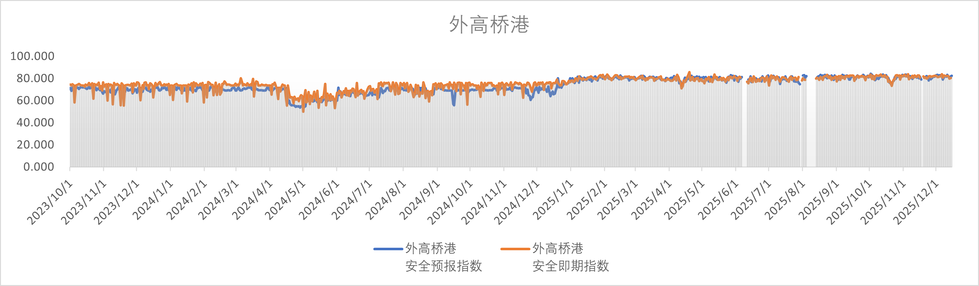 该指数运用AIS大数据技术,分析近十年上海港靠离泊作业准点情况和事故险情数据,从环境、船舶、航行、管理四个维度构建临近预报(Nowcasting)模型,评估与预报船舶进出港安全和靠离泊准点态势。