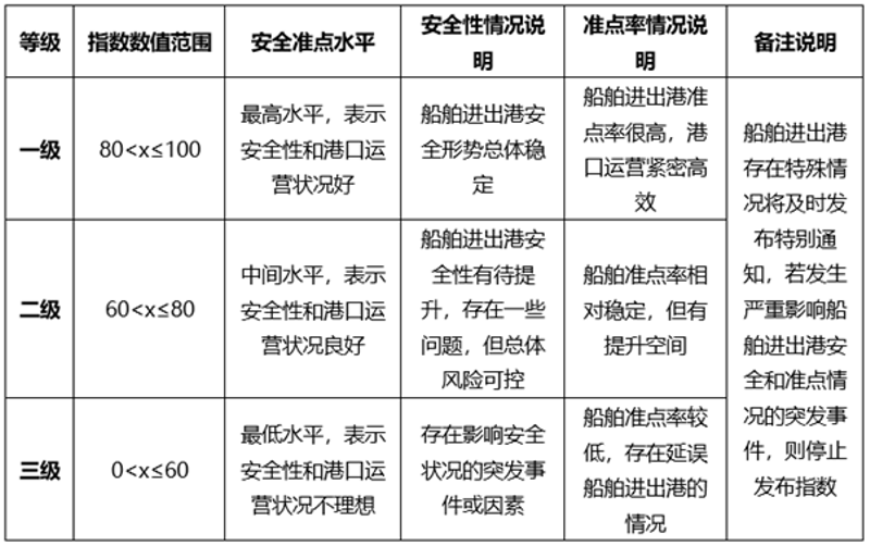 通过对上海港水域的预测通航环境、船舶预计抵港时间申报准确性(预计抵港准点率)、预测船舶航行动态等多维数据进行深入分析,形成进出港通航安全预报评价指标体系和准点预报评价规则,编制并发布上海港国际航行集装箱船舶进出港安全准点预报指数,并于每个工作日发布当天的预报指数结果(例如:1017日发布1017日的预报指数结果)和前一天的即期指数结果(例如:1017日发布1016日的即期指数结果)。